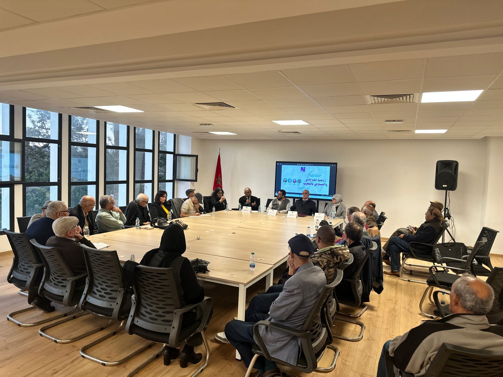 عرف اللقاء حضورا وازنا لثلة من الباحثين والمهتمين بقضايا النقد الأدبي والمسرحي وشهد نقاشا غنيا وتفاعلا واسعا بين المؤطرين وجمهور المتتبعات والمتتبعين، كما تميز بكلمة تقديمية للأستاذ “هشام بهلول”؛ مدير قاعة مسرح عبد الصمد الكنفاوي، معبرا عن ترحيبه بالمشاركات والمشاركين في هذه المائدة المستديرة ومنوها بموضوعها.